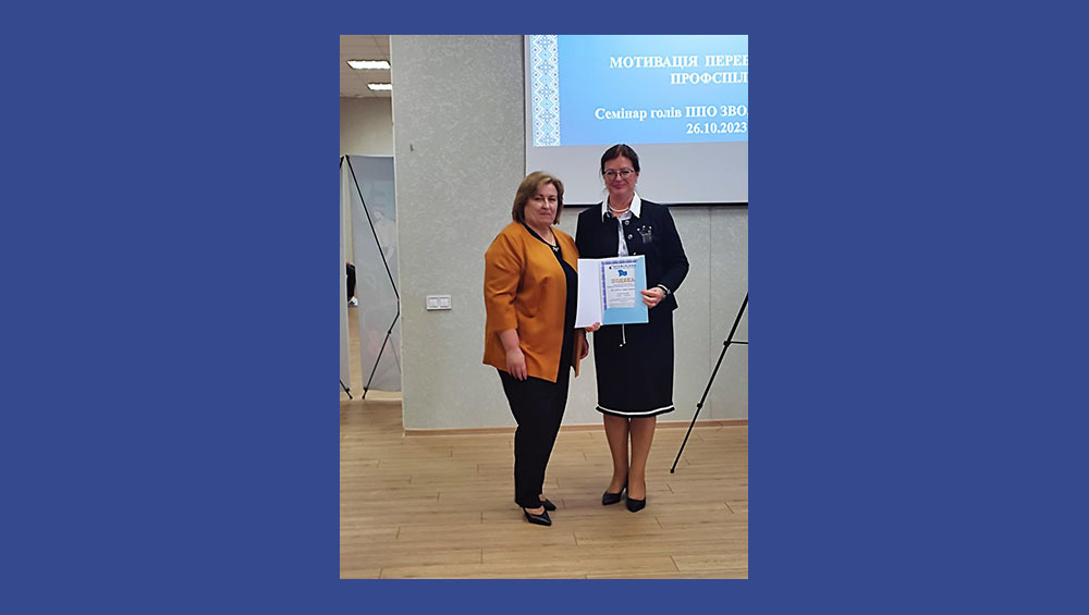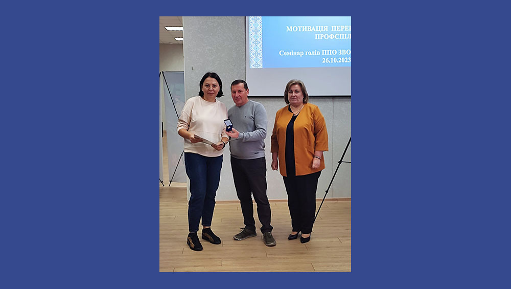 На завершення плідної та різнопланової роботи заступник голови Профспілки Сергій Романюк вручив профспілковим працівникам високі нагороди ЦК Профспілки, а саме: нагрудними знаками «Заслужений працівник Профспілки працівників освіти і науки України» нагороджені головний бухгалтер Одеської ОО ППОНУ Тетяна Кузнецова та завідувачка відділу соціально-економічного захисту працівників Валентина Подгорець; нагрудним знаком «Профспілковий лідер» — голова Первинної профспілкової організації КЗ «Одеський педагогічний фаховий коледж» Тетяна Долинська.