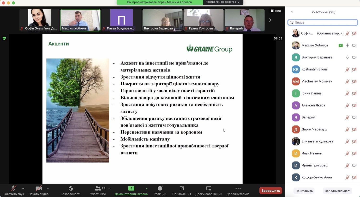 29 квітня 2021 року був проведений науковий аспірантський семінар з керівником та директором страхової компанії ТОВ «Логістика Иншуранс Онлайн» Сергієм Олександровичем Федченко, який розповідав аспірантам та відповідав на питання, щодо практичних аспекти сучасних проблем зі страхування, зміни інфраструктури страхового ринку України та фінансового ринку в цілому. Також С.О. Федченко провів гостьову лекцію щодо практичних питань узгодження угод на фінансовому ринку України.