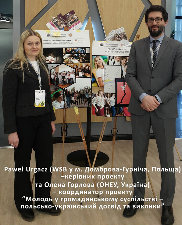 На першому українсько-польському форумі «Неформальна освіта в роботі з молоддю», який проводився 11-12 грудня 2017 в м.Києві (організатори – Міністерство молоді і спорту України та Фонд Розвитку Системи Освіти Республіки Польща (FRSE)), були представлені результати спільного міжнародного проекту «Молодь в громадянському суспільстві – польсько-український досвід і виклики» ОНЕУ і WSB (м Домброва-Гурнічій, Польща).