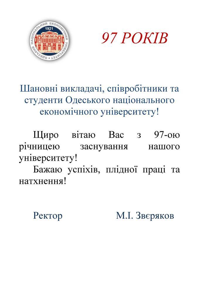 Одеський національний економічний університет відзначає 97-му річницю свого заснування!