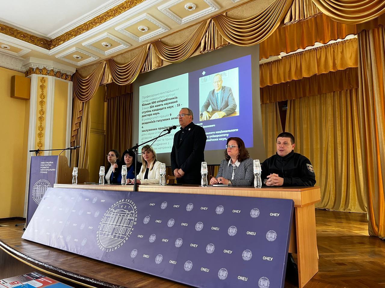 Університетський інформаційний захід з нагоди Тижня охорони праці пройшов успішно. На заході, який відбувся під керівництвом ректора університету, доктора економічних наук, професора Ковальова Анатолія Івановича, спільно з очільником відділу охорони праці ОНЕУ, Дейнекою Світланою Василівною було зазначено значний інтерес студентів, викладачів та працівників університету до теми впливу зміни клімату на умови праці та стан здоров’я.