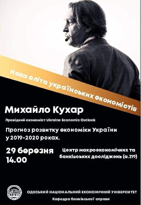 ?29 березня о 14:00 в ОНЕУ відбудется виступ провідного економіста Ukrainian Economic Outlook Михайла Кухара ?