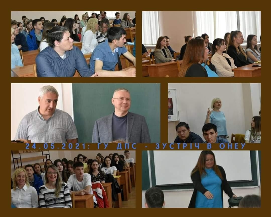 24 травня 2021 року в межах співпраці зі стейкхолдерами, на основі підписаного меморандуму, відбулася зустріч з заступником начальника Головного управління ДПС в Одеській області Анатолієм Бондаренко та начальником управління кадрового забезпечення та розвитку персоналу ГУ ДПС в Одеській області Романом Кириленко щодо працевлаштування до податкової служби регіону. Здобувачі третього рівня вищої освіти, студенти, випускники та працівники університету прийняли активну участь у зустрічі. У форматі відкритого діалогу обговорили питання стосовно умов проходження практики, стажування, працевлаштування в різних структурних підрозділах податкової служби області, конкурсного відбору, умов праці та подальшого кар’єрного росту, а також різні питання податкової законодавства.
