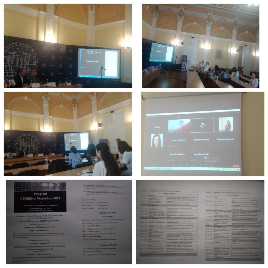16-17 вересня 2021 року на базі Одеського національного економічного університету в рамках програми CESEENet Воркшоп 2021 відбувся Семінар Центрального, Східного та Південно-Східного Європейського співтовариства PhD З ЕКОНОМІКИ, МЕНЕДЖМЕНТУ та ФІНАНСІВ у якому прийняли участь як аспіранти ОНЕУ, так і науково-педагогічні працівники.