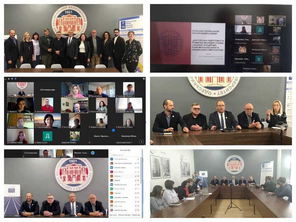 29 вересня 2021 року в Одеському національному економічному університеті о 12:00 (із застосуванням технічних засобів відозв’язку) в рамках Польско – українського ректорского семінару відбувся вебінар на тему: «Докторська підготовка та розвиток молодих учених у контексті кадрової політики польських та українських університетів», за участі представників 9 ЗВО Польщі. В семінарі прийняли участь топменеджмент ОНЕУ, науково-педагогічні працівники (у т.ч. гаранти освітньо-наукових програм), здобувачі третього (освітньо-наукового) рівня вищої освіти спеціальностей: 051 «Економіка», 071 «Облік та оподаткування», 072 «Фінанси, банківська справа та страхування», 073 «Менеджмент», 075 «Маркетинг», 076 «Підприємництво, торгівля та біржова діяльність». Серед модераторів та спікерів: проф. Єжи Лис, ректор AGH Університету науки і технологій у Кракові; Олесандр Хазгал, PhD, голова Ради з докторської підготовки Європейської Асоціації, EUA-CDE; Евеліна Пабіянчик-Влазло, PhD, Наталія Красьнєвська – експерти-дослідники у Проєкті Докторські школи у закладах вищої освіти Польщі – організаційно-управлінські моделі; проф. Марта Косьор-Казберук, ректор Білостоцької Політехніки; проф. Ян Шмідт, Почесний Президент KRASP, ректор Варшавської Політехніки у 2012-2020 рр.; Евеліна Побіянчик-Влазло, PhD, Лодзинська політехніка, член Ради молодих учених при МОН Польщі 2018-2021; Марчин Докович, PhD, експерт Проекту, Познанський університет ім. Адама Міцкевича; Ярослав Ольшевський, Голова Національного представництва аспірантів Польщі KRD, Варшавський природничий університет SGGW; проф. Єжи Возніцький та інші. У ході зустрічі були обговорені актуальні питання колаборації між польскими та українськими ВИШами та шляхи впровдження співпраці.